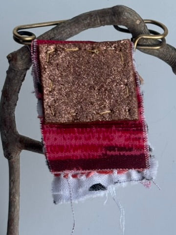 OOAK Textile Brooch - Vintage bead and charm -red, black, white